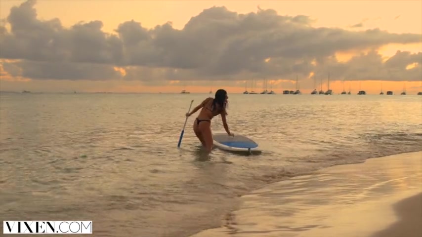 Beautiful brunette nubile takes a fat shaft in her slutty mouth and her tight ass