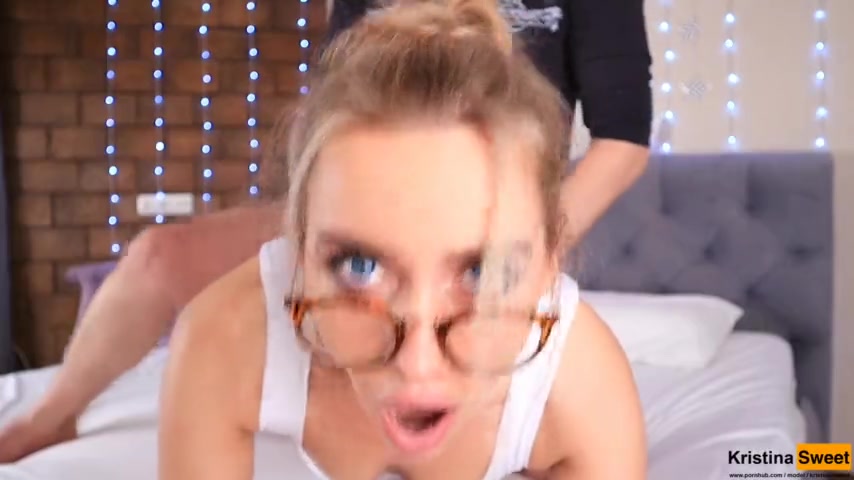 Dazzling blonde teen with a perfect body swallows his rod and takes it doggy style
