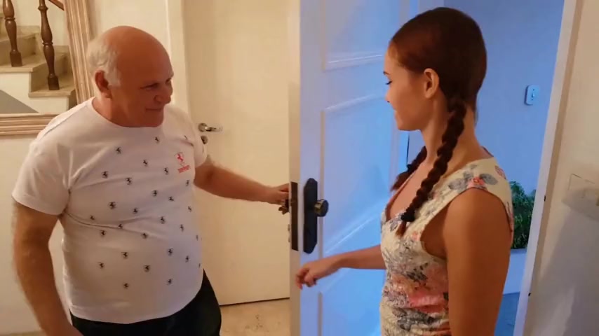 Dirty teen give her grandpa a french kiss