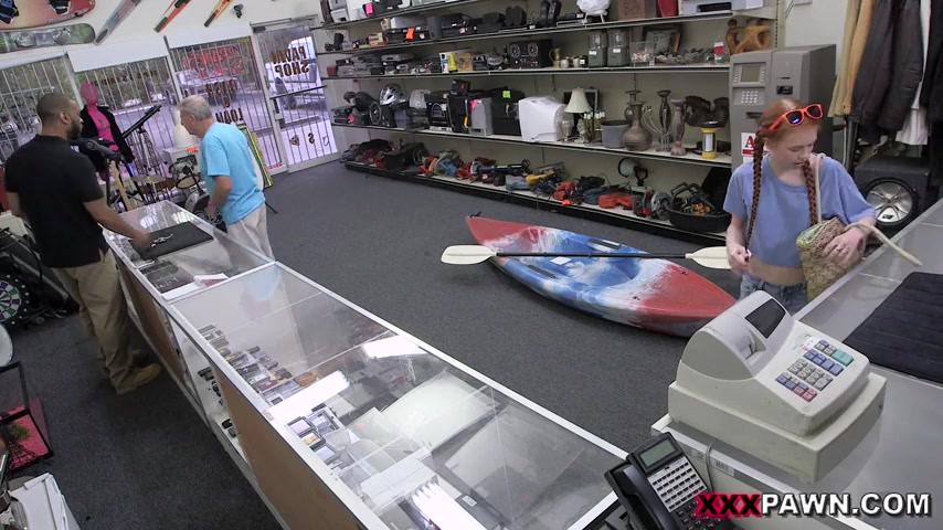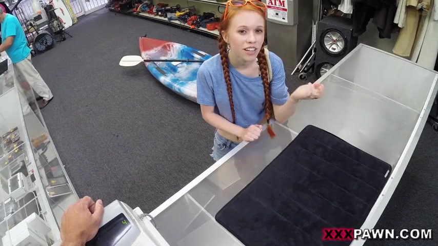 Tiny redhead teen Dolly Little rammed in the back of the shop
