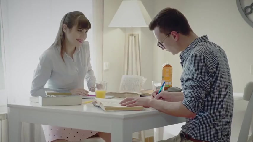 Innocent looking teen babe with big boobs serviced by well endowed boyfriend