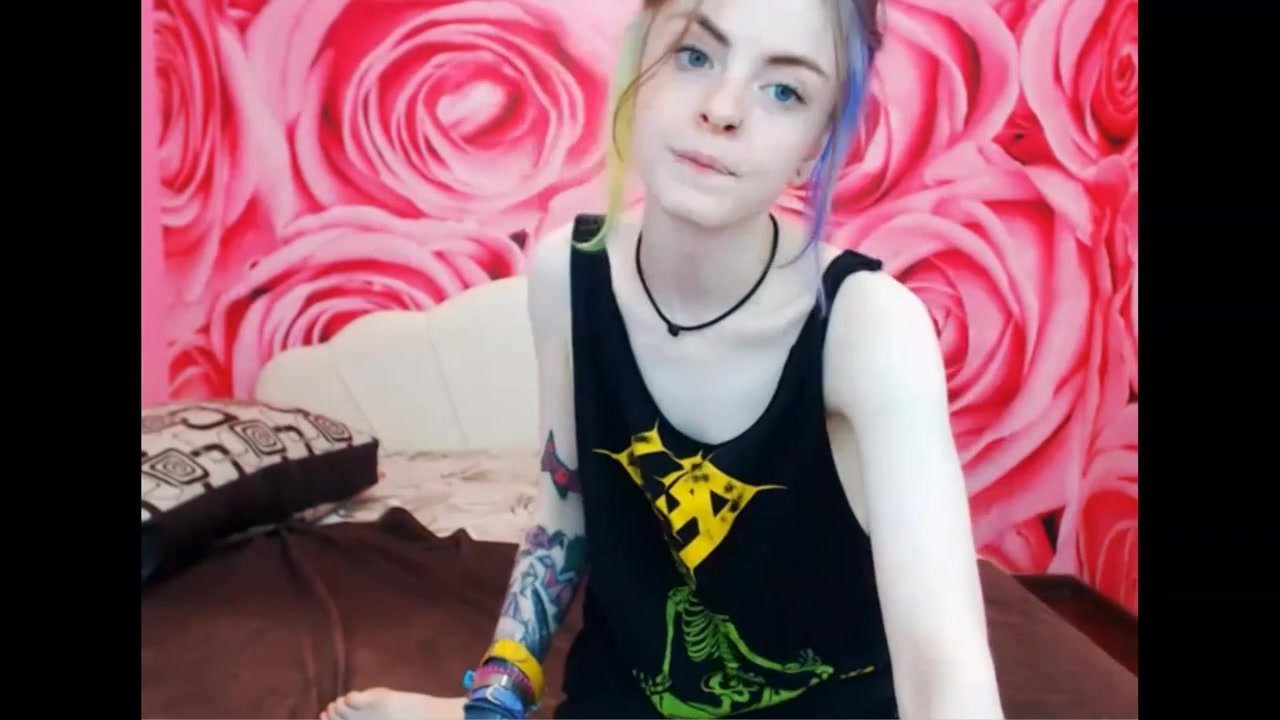 Pale teenage hottie teases with her skinny body and cute feet
