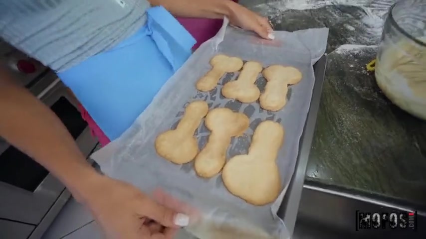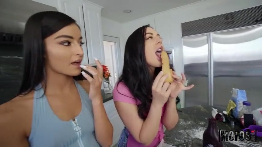 Teens Emily Willis & Whitney Wright fuck in a 3some while making cookies in the kitchen