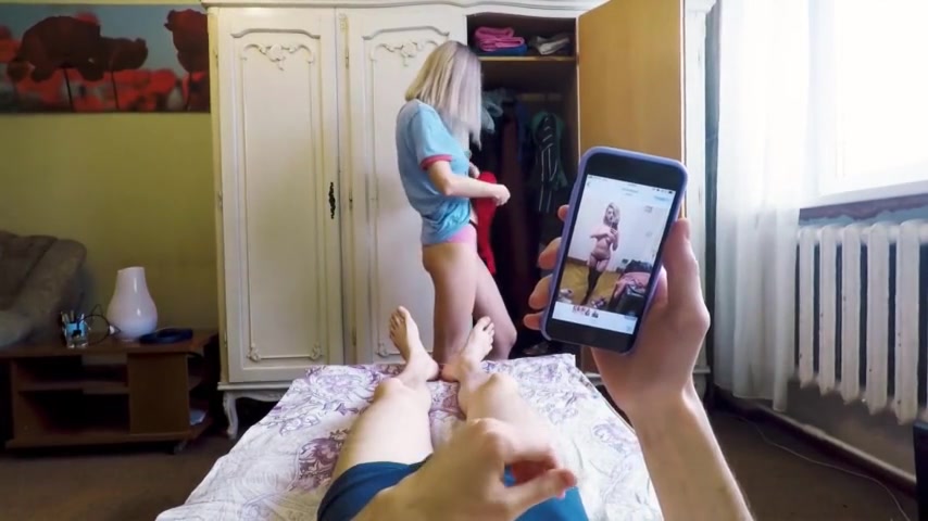 Huge boobed teen approaches her stepbrother, strips and wanks his big dick