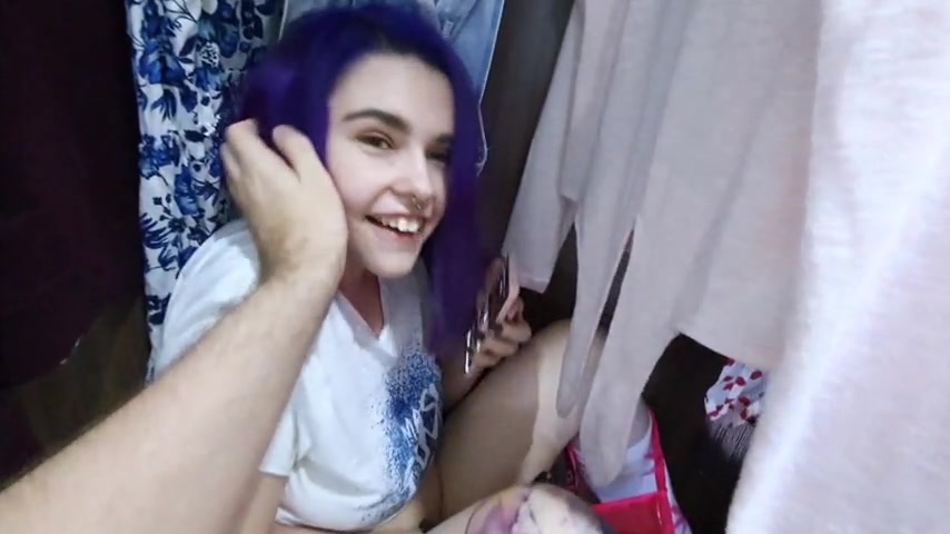 Horny purple haired teen with a big booty sucks and fucks