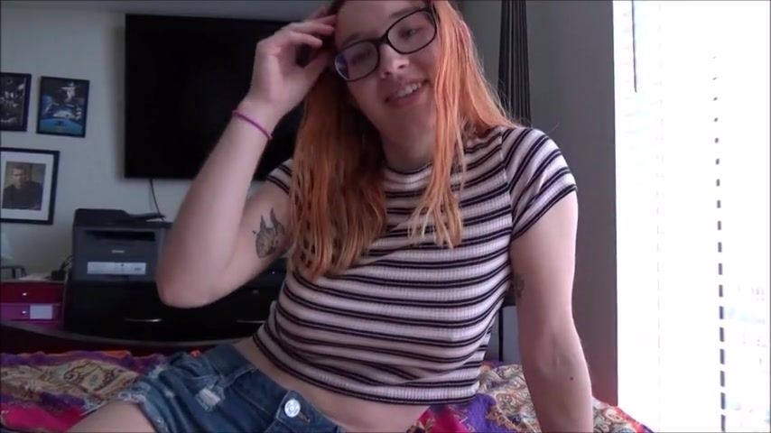Slutty blonde teen Lucie Kline milking a big cock on the bed
