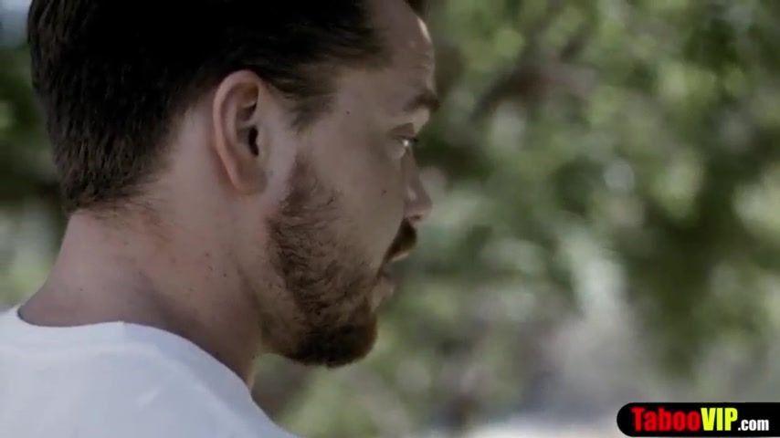 Redhead babe gives her stepfather a blowjob before riding his hard cock